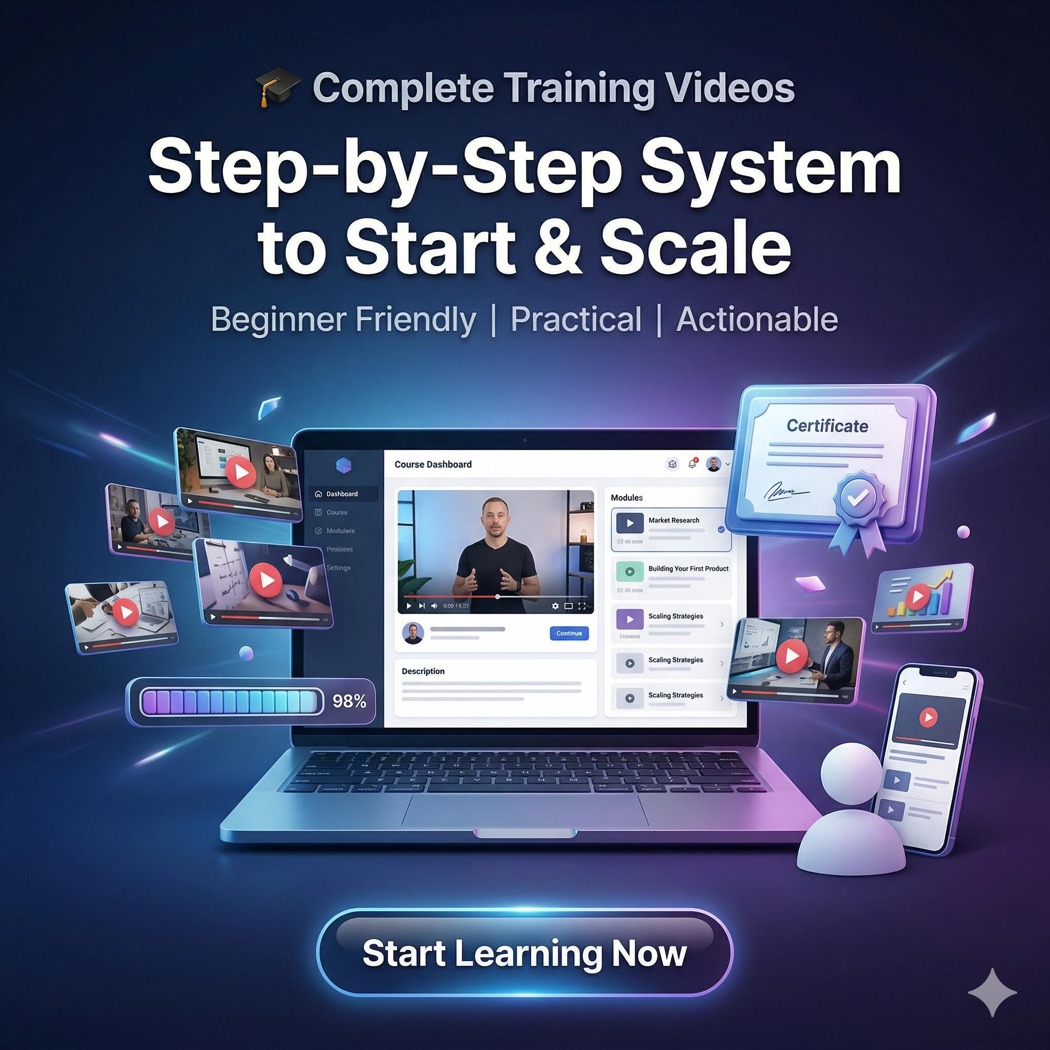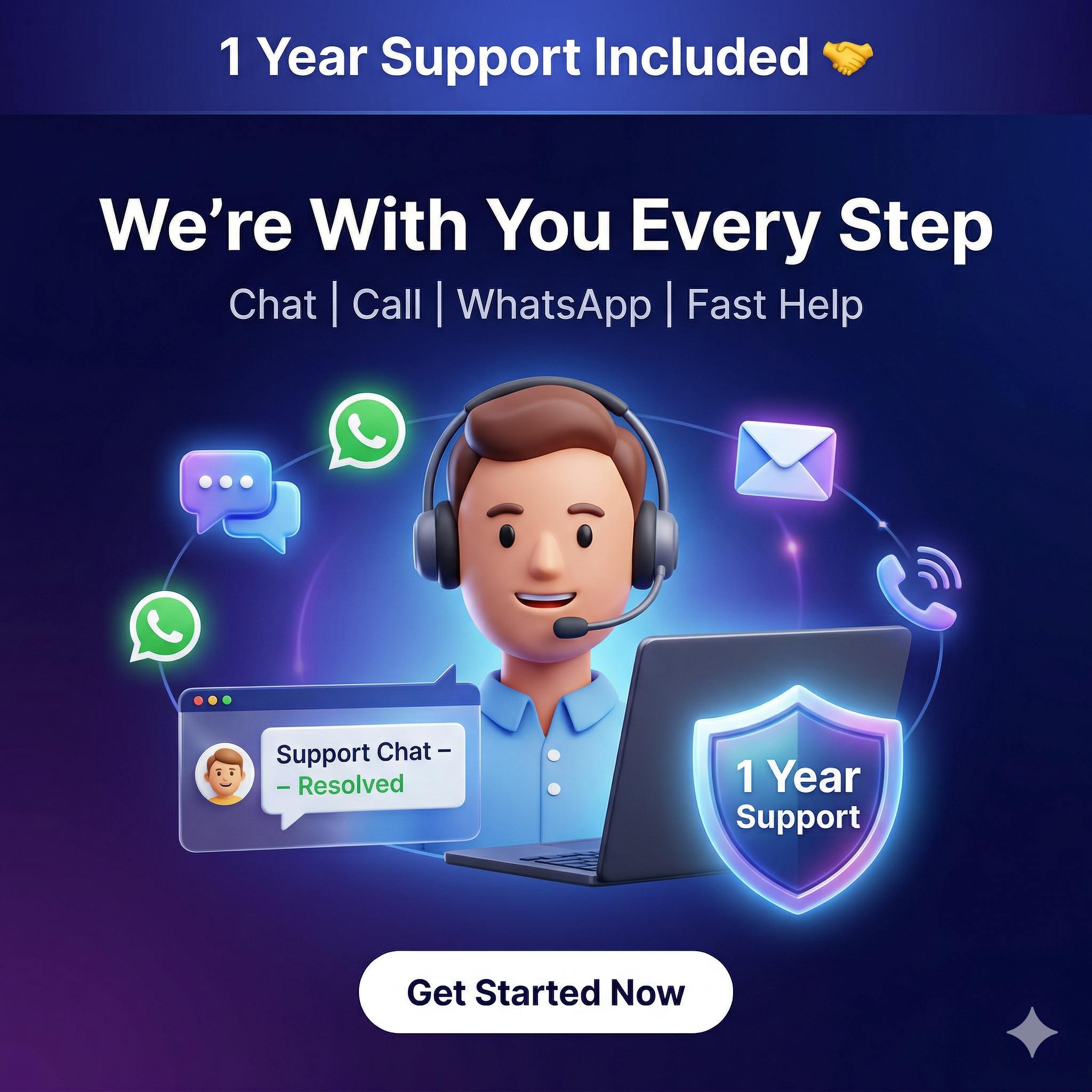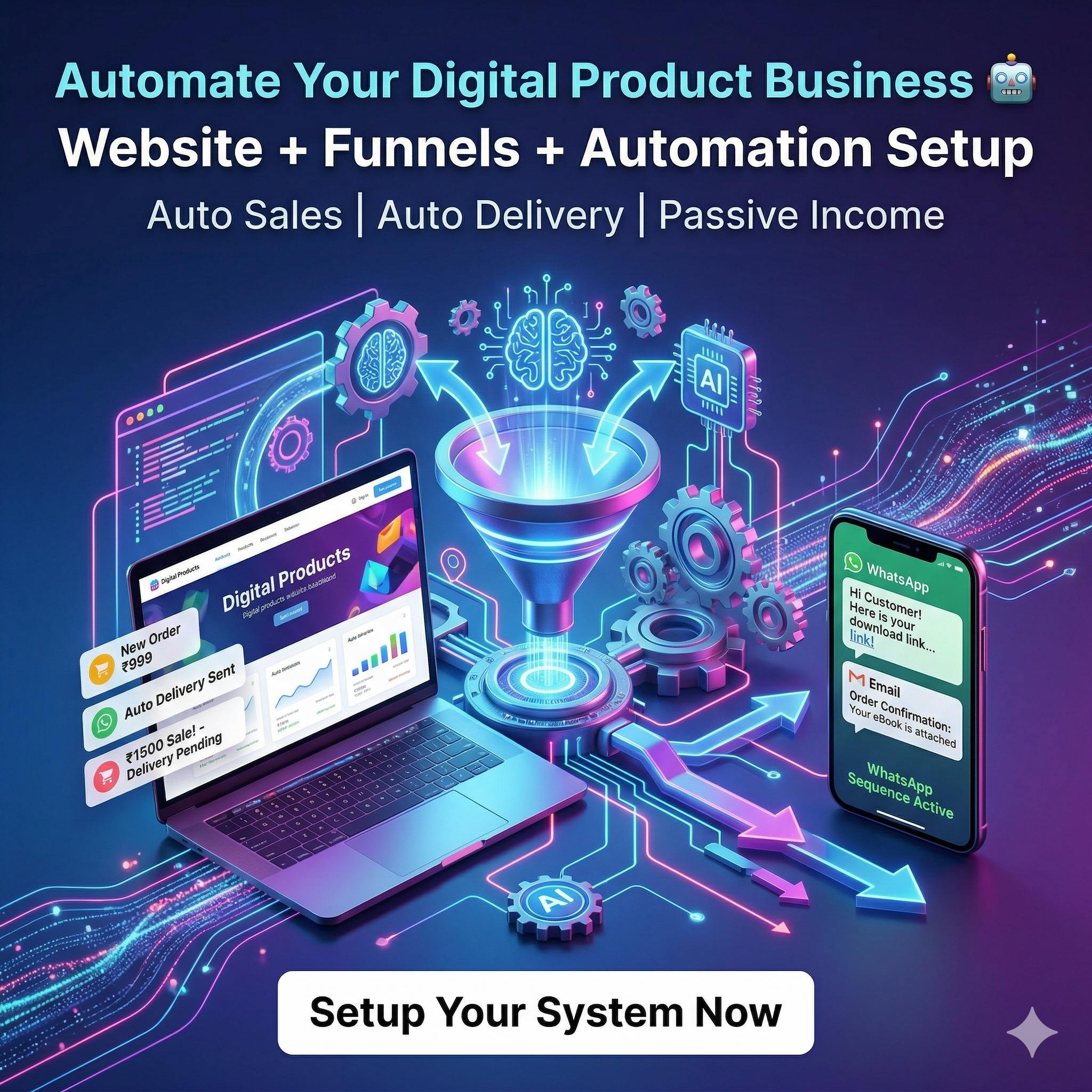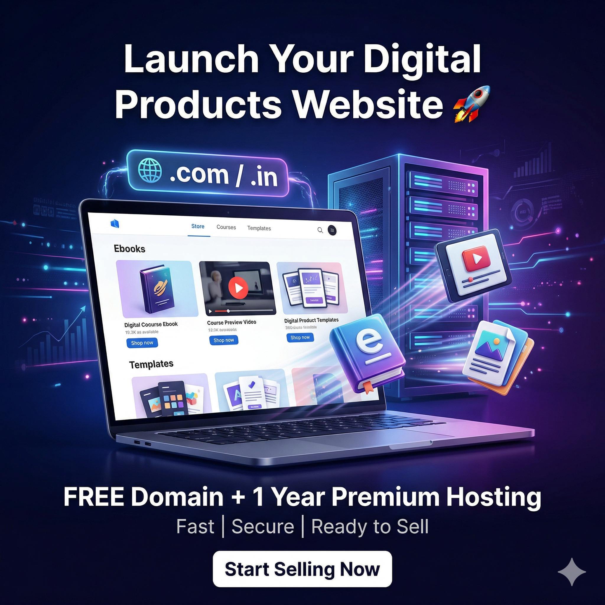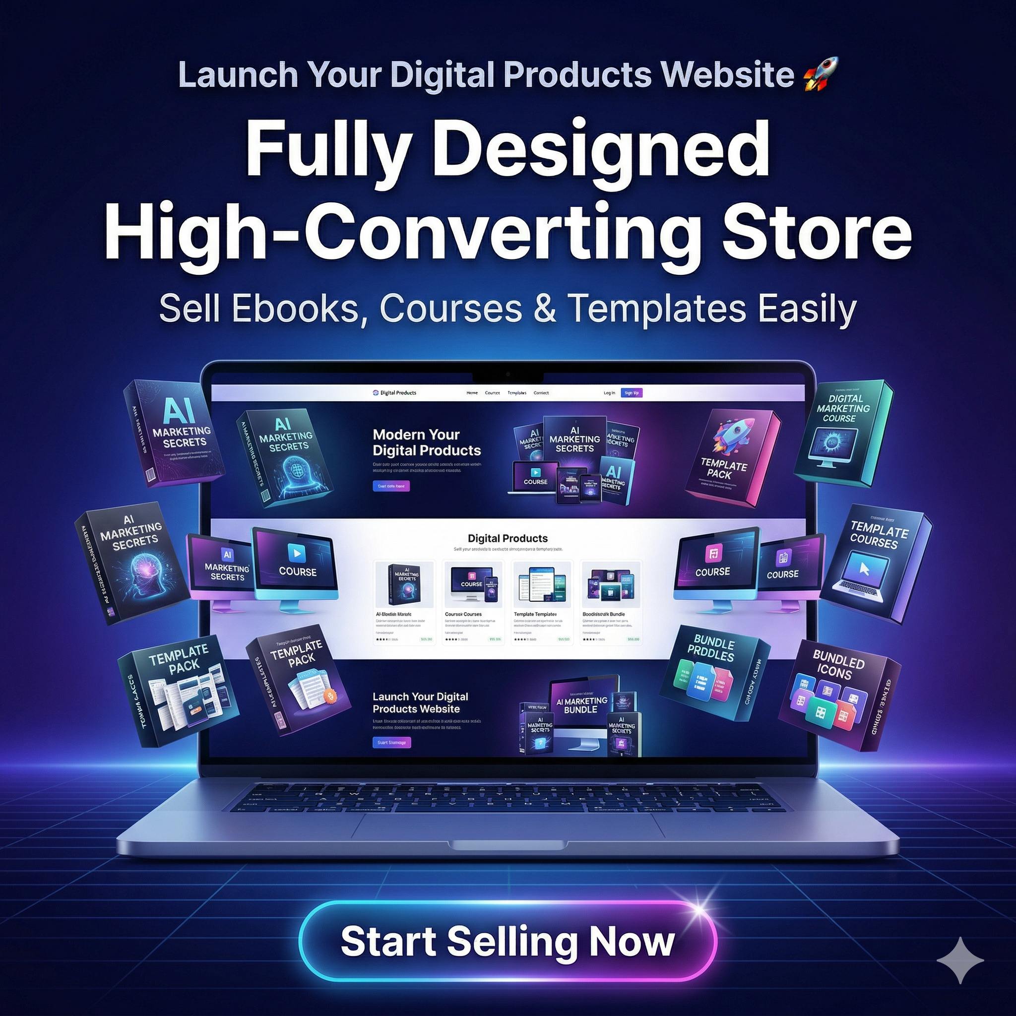 You will get a complete digital business setup including website, domain, hosting, 100+ products, payment system, automation and step-by-step guidance